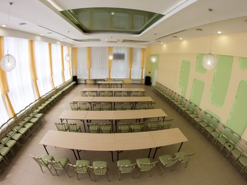 Для проведения деловых мероприятий любого уровня предлагается великолепно оснащенный конференц-зал «Зимний сад» с современным оборудованием и вместимостью до 300 человек.